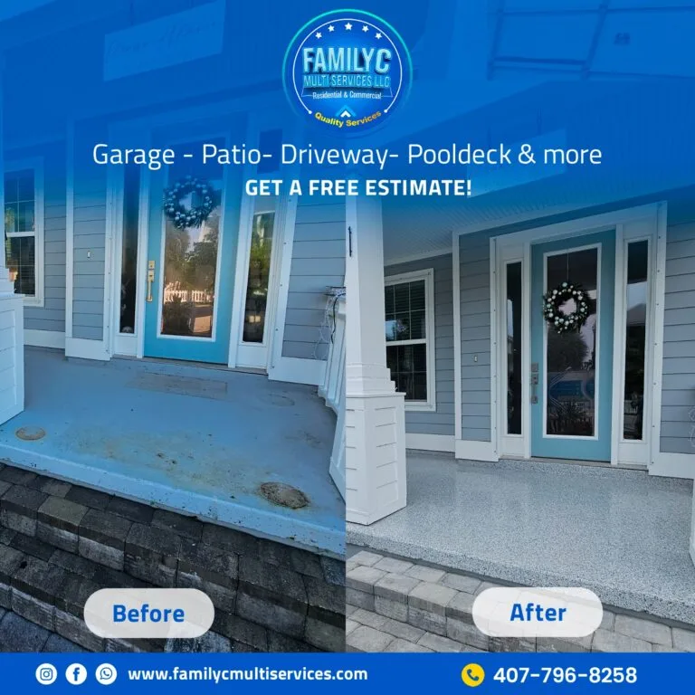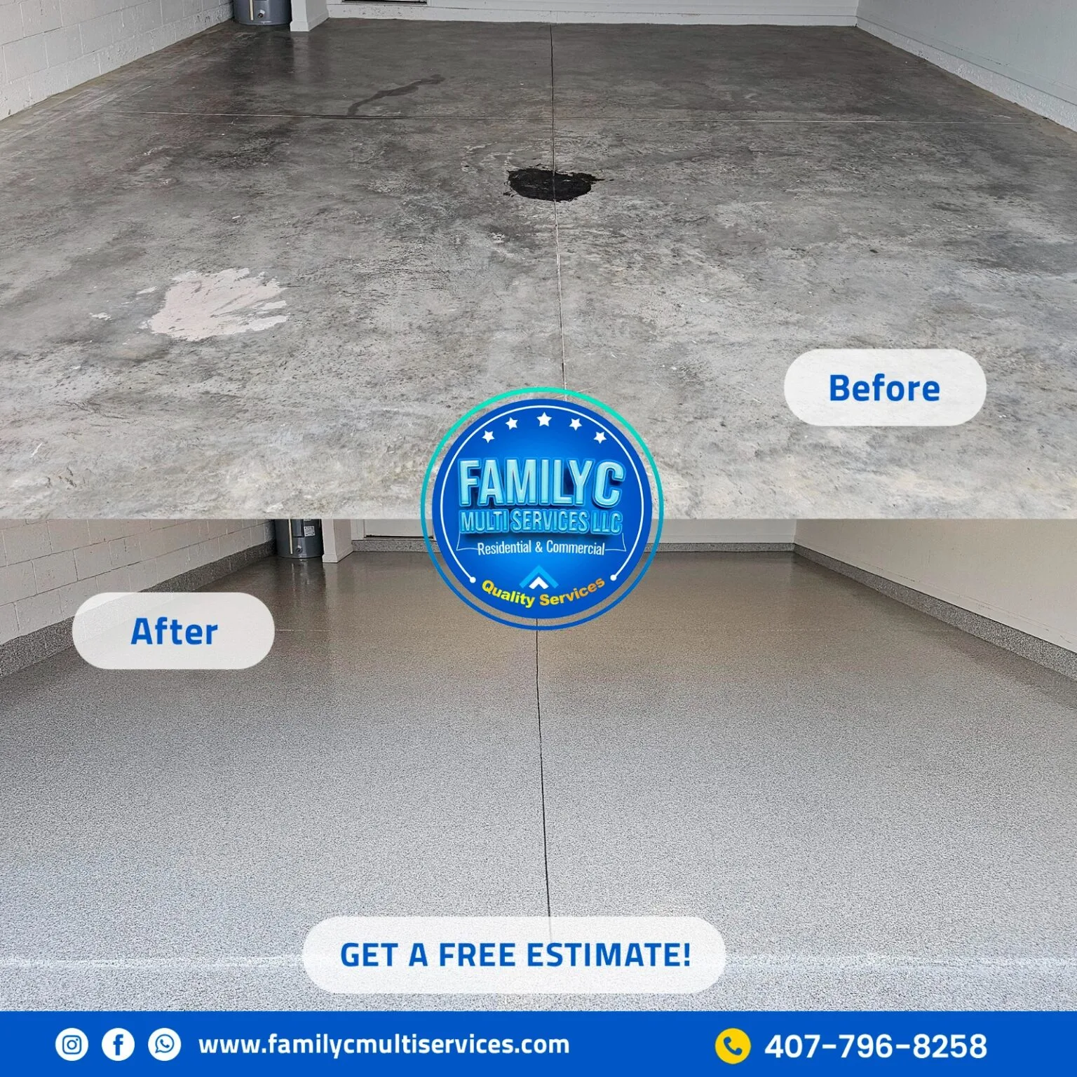 Enhance your home with Family C Multi Services LLC. As Central Florida’s premier provider of high-quality epoxy coating solutions and services such as epoxy flooring, metallic floor, paver sealer, polished concrete, stain concrete, pressure washing we ensure your property stands out. With our expertise, attention to detail, and commitment to excellence, trust us to elevate the beauty, durability, and value of your home.